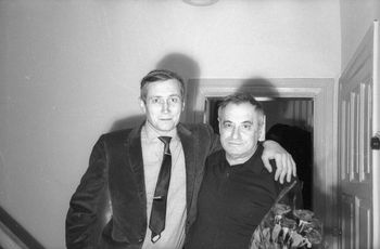 20-летие журнала «Юность». Валентин Катаев и Булат Окуджава в фойе. 1972 г.