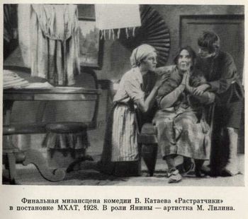 Финальная мизансцена комедии В. Катаева «Растратчики» в постановке МХАТ, 1928 г.